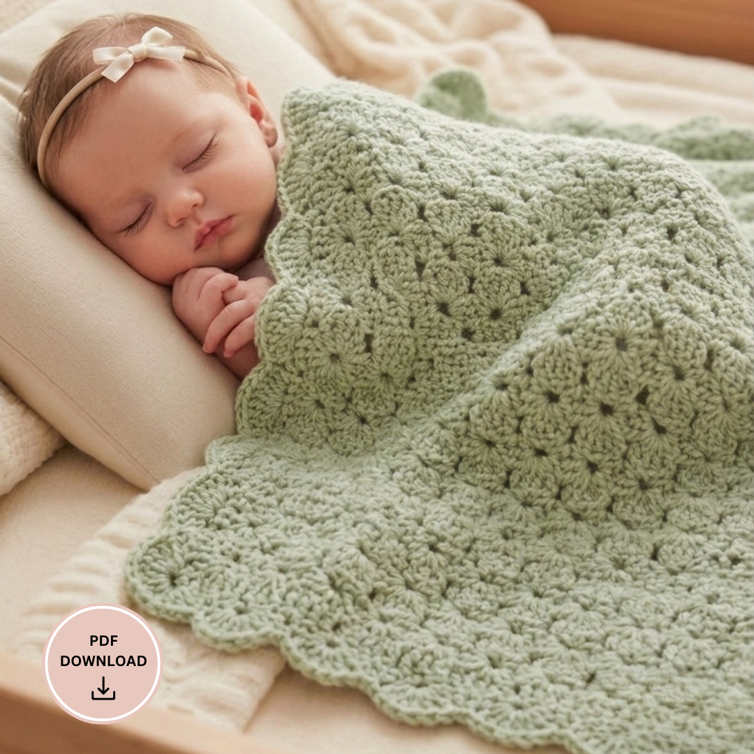 Easy Baby Blanket Crochet Pattern PDF, Shell Stitch Beginner Friendly Tutorial, Quick Digital Download