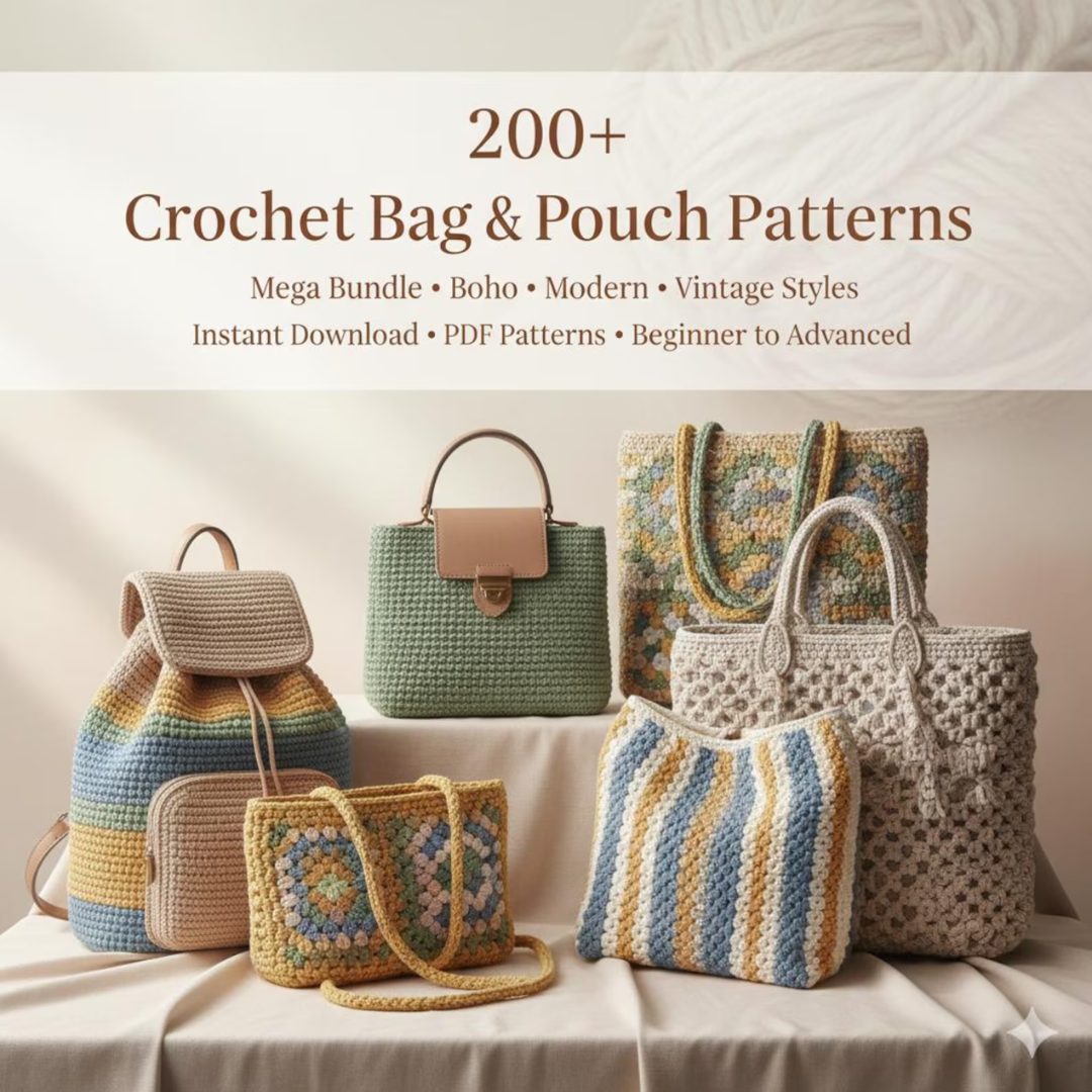 200+ Crochet Bag & Pouch Patterns Mega Bundle: Boho, Modern, Vintage Styles PDF Instant Download